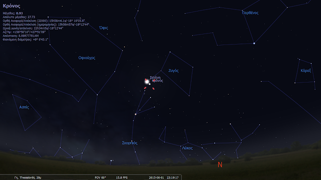 Την πρώτη Ιουνίου η ΣΕΛΗΝΗ θα βρίσκεται μόνο μία μοίρα πάνω από τον ΚΡΟΝΟ, στον αστερισμό του Σκορπιού !