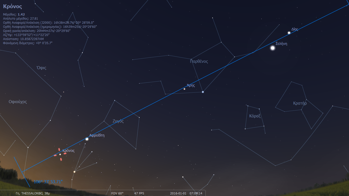 Το χαρακτηριστικό του μήνα Ιανουαρίου του 2016 είναι πως τις πρώτες μέρες όλοι οι πλανήτες και η Σελήνη βρίσκονται στην Ανατολή το Πρωί !!! Εκτός του Ερμή που τις πρώτες μέρες του μήνα θα είναι στη Δύση..